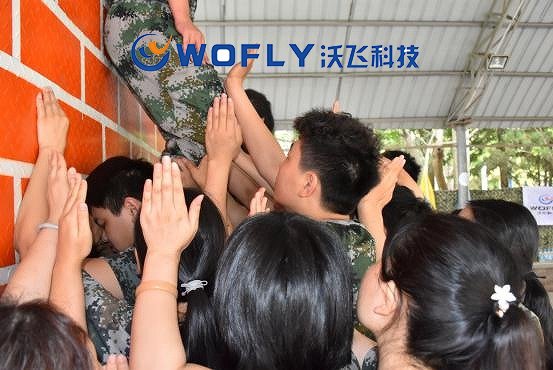 團建的壓軸項目是翻越一面4.3米高的“畢業(yè)墻”,無任何輔助道具,無任何外力幫助,只憑借單槍匹馬,是不可能爬上去的,想要過去的唯一途徑依靠于沃飛30人的團隊力量。在這個過程中,沃飛團隊就像一個大家庭,無論男生女生,都貢獻著自己的力量,搭建人梯、群力托舉,伙伴們有力的肩膀,一雙雙托舉的手,一張張憋足了勁而漲紅的臉,每個人都在借助身邊人的力量向上爬,也在拼盡全力幫助其他小伙伴登上墻頂。