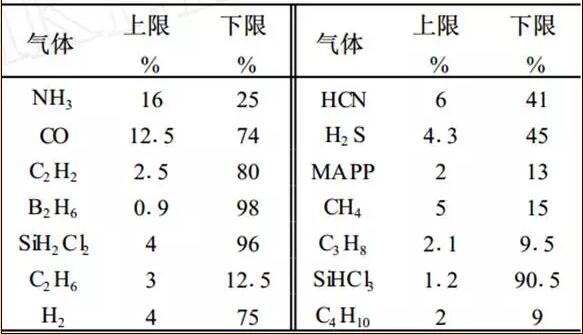 (1)部分氣體在空氣中的爆炸極限