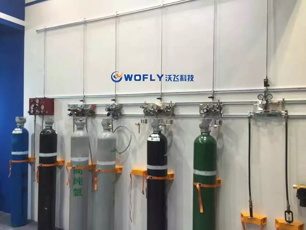 3、再次是解決氣瓶壓力的問題。每種氣體可以將多瓶氣體并聯(lián)然后通過一個出口統(tǒng)一減壓后運送氣體至使用點。因為氣瓶間是相對獨立的,整個氣路系統(tǒng)壓力最大的地方也是氣瓶出口處,因此這種方式將氣瓶壓力可能發(fā)生的危險縮小至氣瓶間內(nèi),可對人體及儀器的傷害可降到最低。