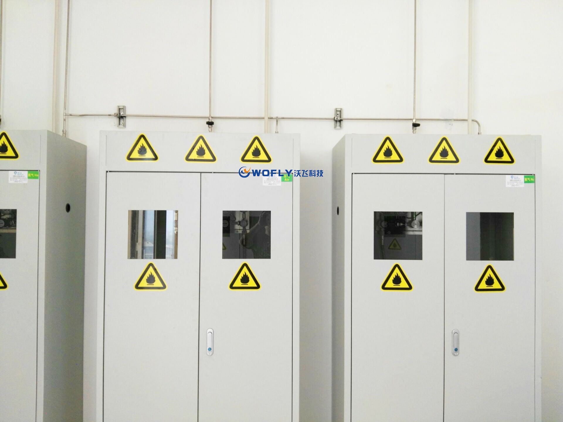 氣體泄漏報(bào)警:對于易燃、易爆、有毒、腐蝕性氣體,在氣瓶間與使用點(diǎn)處安裝泄漏偵測探頭,如果氣瓶房氣體發(fā)生泄漏的話,感應(yīng)探頭會即刻將信號傳至中心實(shí)驗(yàn)室的液晶顯示屏上,,并發(fā)出預(yù)警的聲音,這樣用戶就可以發(fā)現(xiàn)并即時(shí)維修。